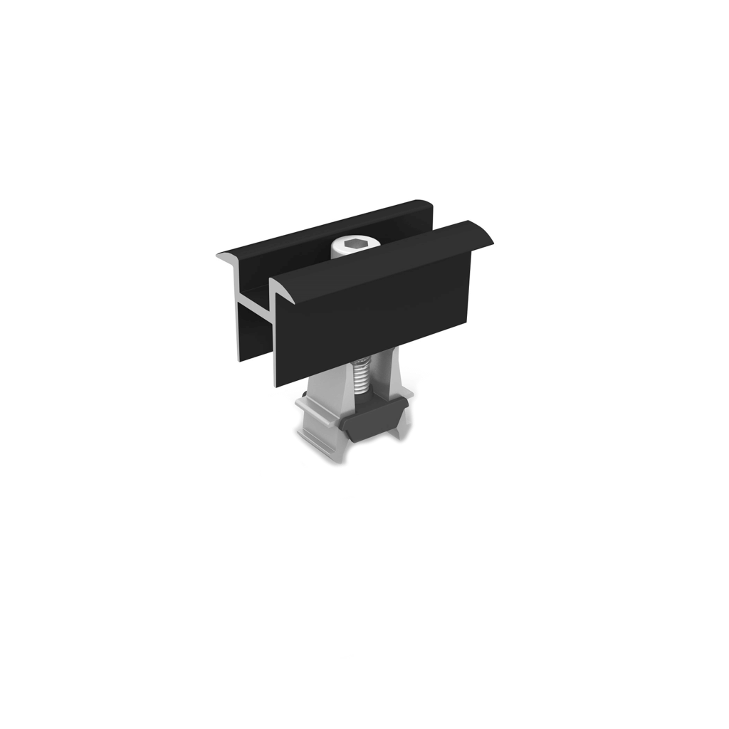Schwarz eloxierte Universal Modulmittelklemme mit einfacher Klickfunktion zum Fixieren von Solarmodulen mit Rahmenhöhen 30-42 mm. Nicht kompatibel mit K2 MiniRail, MicroRail, Dome 6, Dome V System sowie K2 FlatRail, SolidRail L/ LS /XL und CrossRail 62/ 90. Material: Eloxiertes EN AW 6063 T66 / EN AW 6082 T6 / A2 / POM. Eloxal kann aufgrund von Verpackung und Transport leichte Kratzspuren aufweisen.
