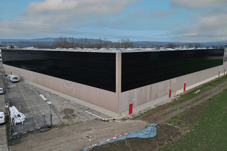 Sur le toit d'un nouvel entrepôt de Gétaz-Miauton à Bulle, Swissroc et Gruyère Energie SA ont réalisé un projet précurseur. Plus de 1,65 GWh d'électricité seront produits chaque année. En outre, un système de toiture verte a été mis en place.